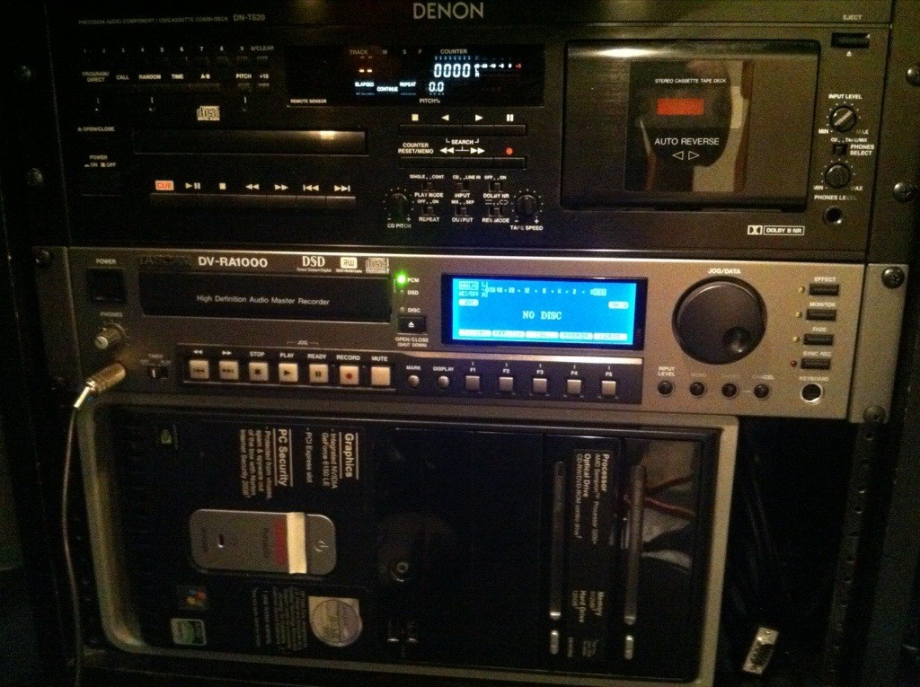 Installed in the audio rack that held the mixer was a digital CD/DVD audio recorder, the Tascam DV-RA1000 which is a high resolution audio mixdown recorder that can record 192kHz/24-Bit audio to a DVD or normal resolution to a CD.