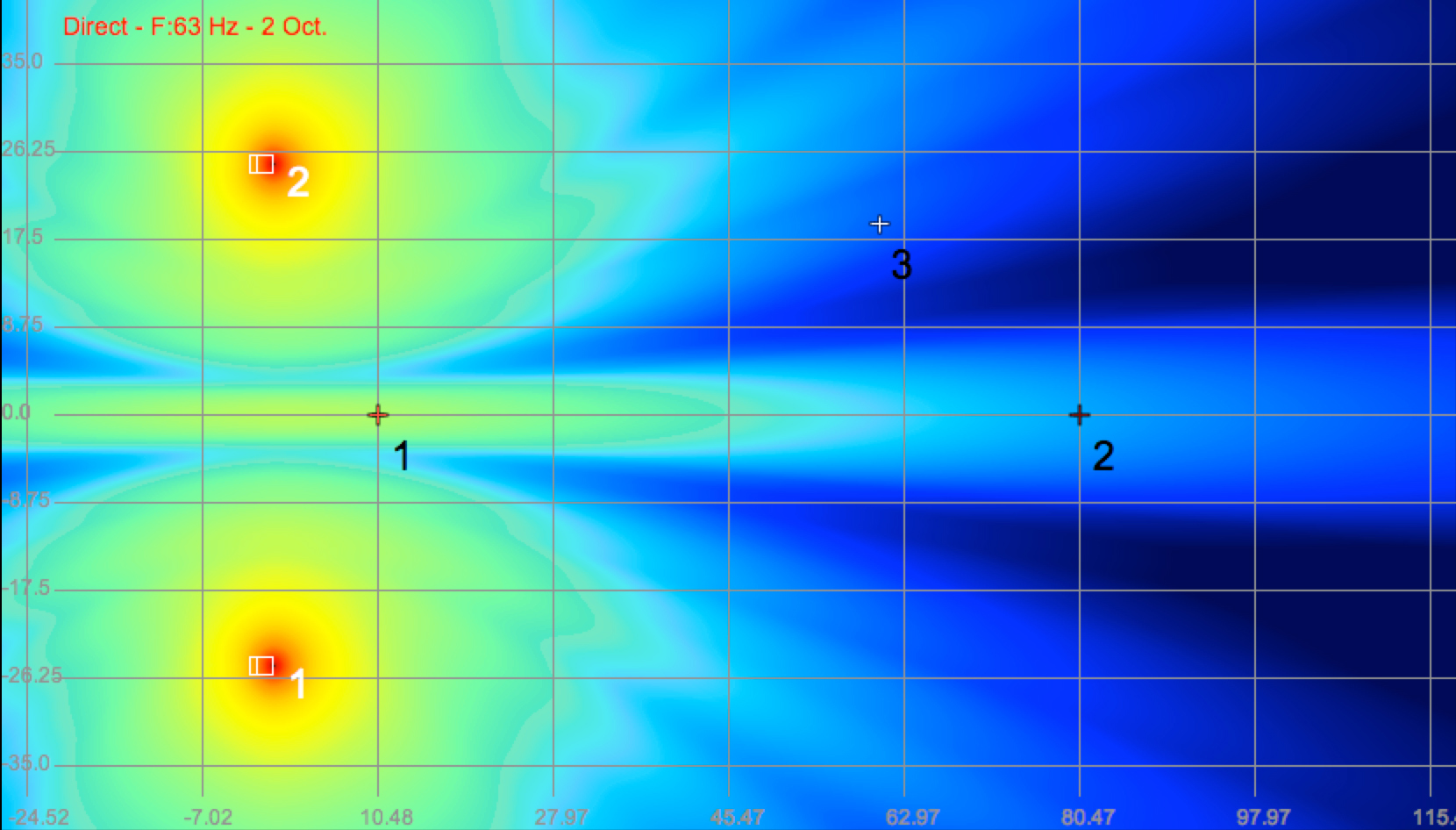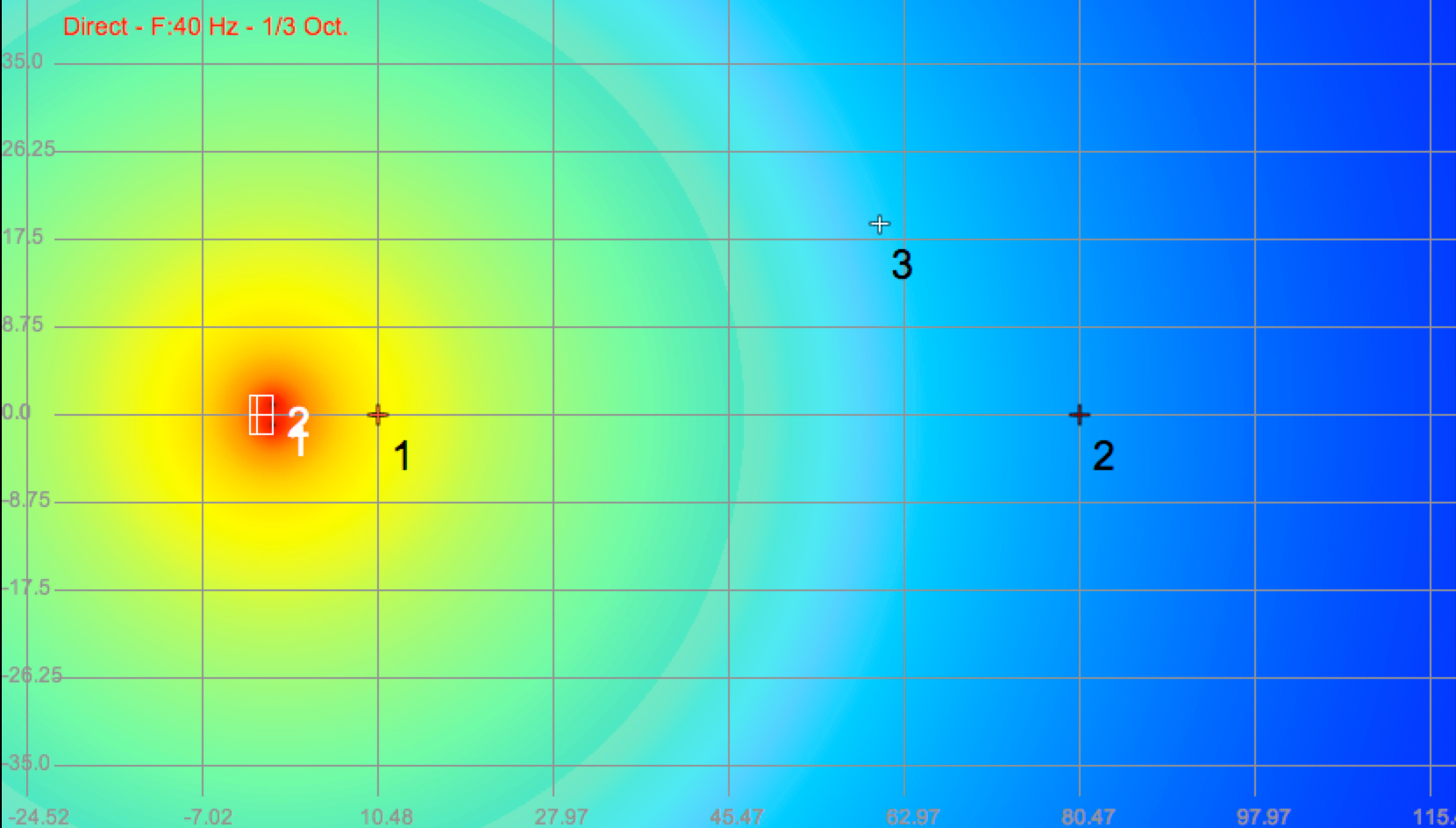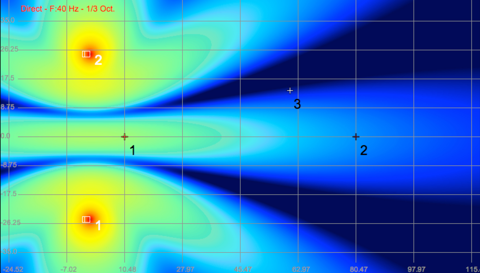 Below are three models of the spaced subwoofers taken at 40Hz, 63Hz and a 2-octave slice of the low end.