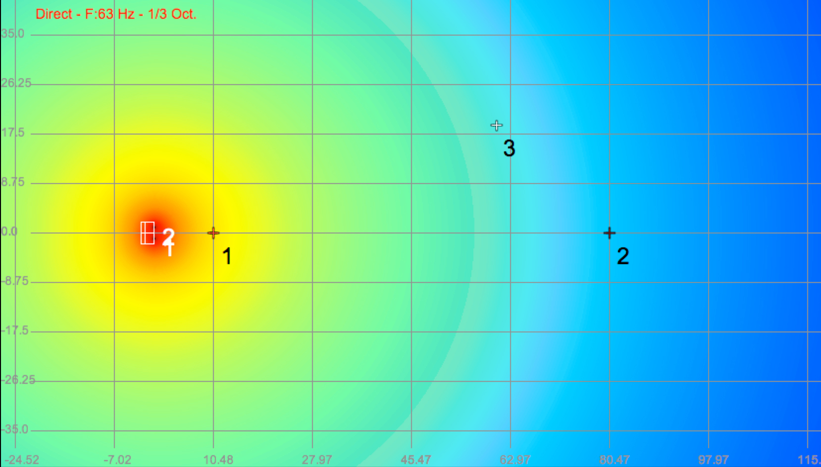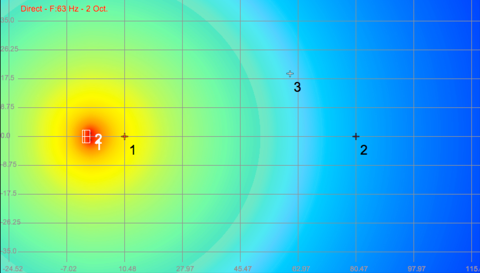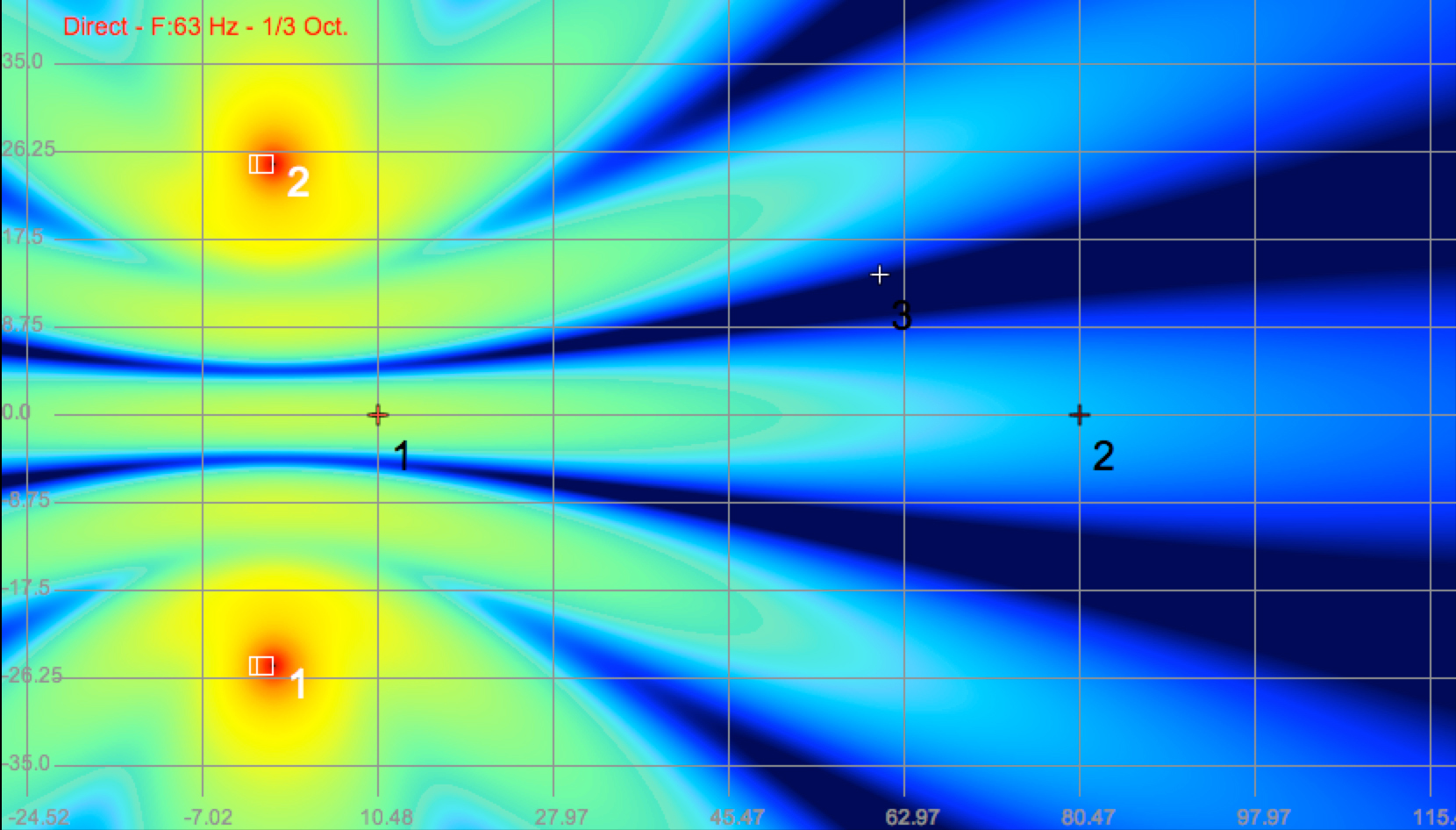 Below are three models of the spaced subwoofers taken at 40Hz, 63Hz and a 2-octave slice of the low end.