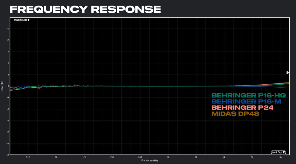 One of my suspicions going into this test was that the Behringer P16-HQ and Behringer P24 might share the same audio circuitry. The measurements confirm this definitively.
