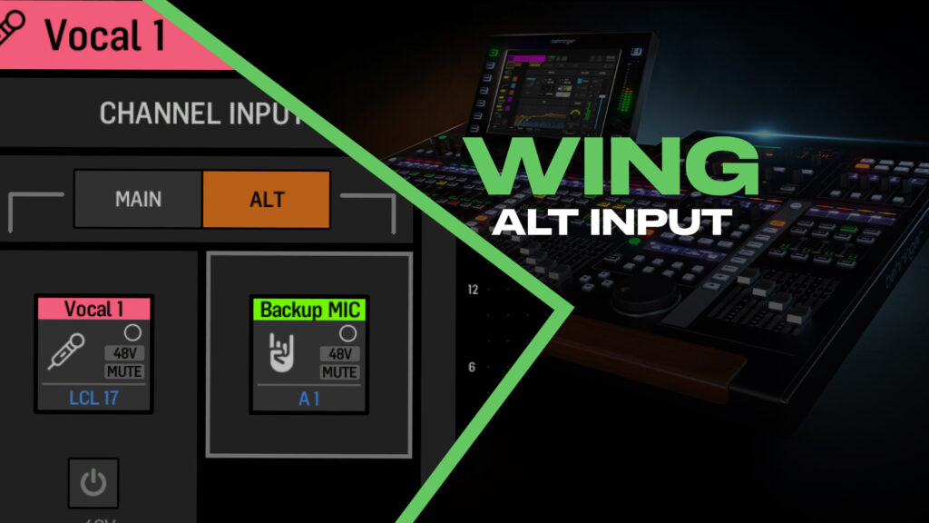 Every channel on the WING can have two inputs assigned to it: a ‘Main’ input and an ‘ALT’ (alternate) input. You can swap between them instantly – either channel by channel, or globally across the entire console.